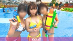 都内の某巨大プール施設にやってまいりました!今年は梅雨が長引いたり自粛ムードだったりで人はまばらですが、ひときわ輝く3人組の女子を発見!写真を撮りたがってるようなので撮ってあげたら、これがけっこうノリのいい子たち!ご飯をおごってあげると言ったらついてきてくれました!3人は同じ職場らしい。「はづき」ちゃんが先輩、「めい」ちゃん・「るな」ちゃんは同期。職場でもプライベートでも仲良しで休日に3人で出かけることも多いという。その後はプールで遊び、2次会的なかんじで借りていたホテルの一室で飲み会を!ノリで水着に着替えてもらったり、肩を抱き合って飲んだり、お酒の口移しをしたり…部屋の中は完全にセクキャバ状態!で、いい具合にあったとこで黄色い水着のめいちゃんと別室へ移動…。すでに状況を理解している彼女は、キスをされ体を触られても抵抗せず受け入れてくれる。他の2人は推定G~Hカップくらいの巨乳ちゃん。規格外なご両人と比べると控えめなおっぱい(Dくらい?)です。が!真っ白でスベスベ肌は触り心地抜群!尻のキレイさハンパないっす!やられるだけではなく、ニコッと笑いながら乳首を舐めてくれたり、オチ○ポを熱心にご奉仕してくれたり…。みんなといた時は賑やかな子だったのに、二人っきりになるとちょっとしおらしくなるのがめっちゃ可愛い!騎乗位のグラインドがすごくてイキそうになるのを必死に我慢し、バックや正常位でもめいちゃんの体を余すところなく堪能!探せば他の子の動画もあったりして…。